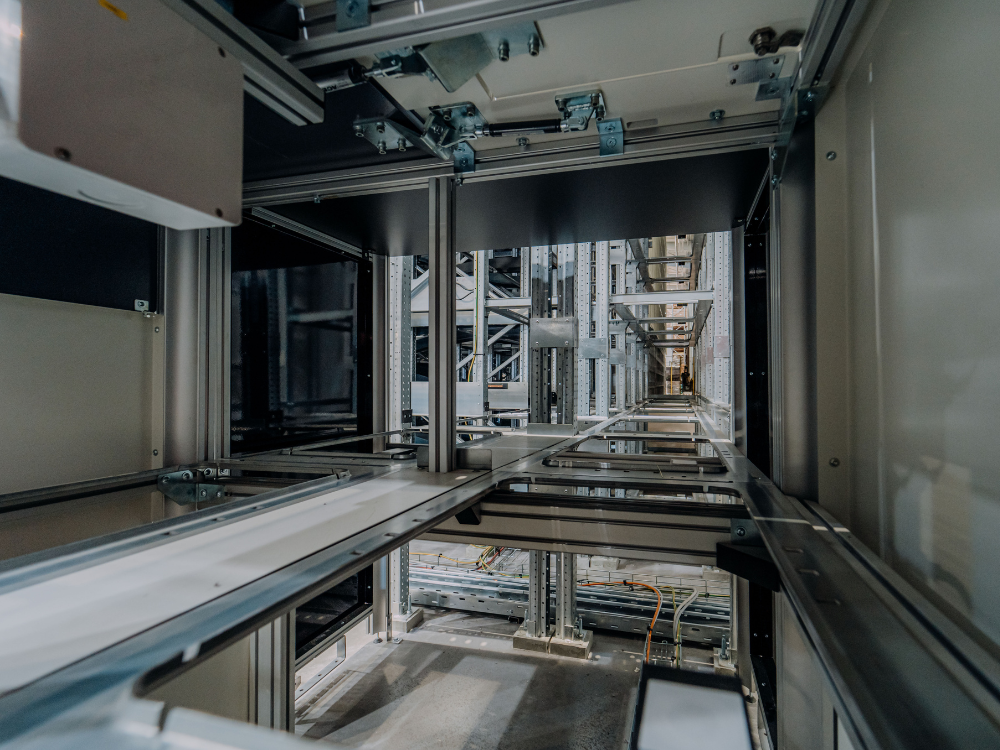 Potpuno autonomni escala roboti kreću se u tri različita smjera u sustavu regala, transportirajući kazete i ladice s proizvodima bez ljudske intervencije.