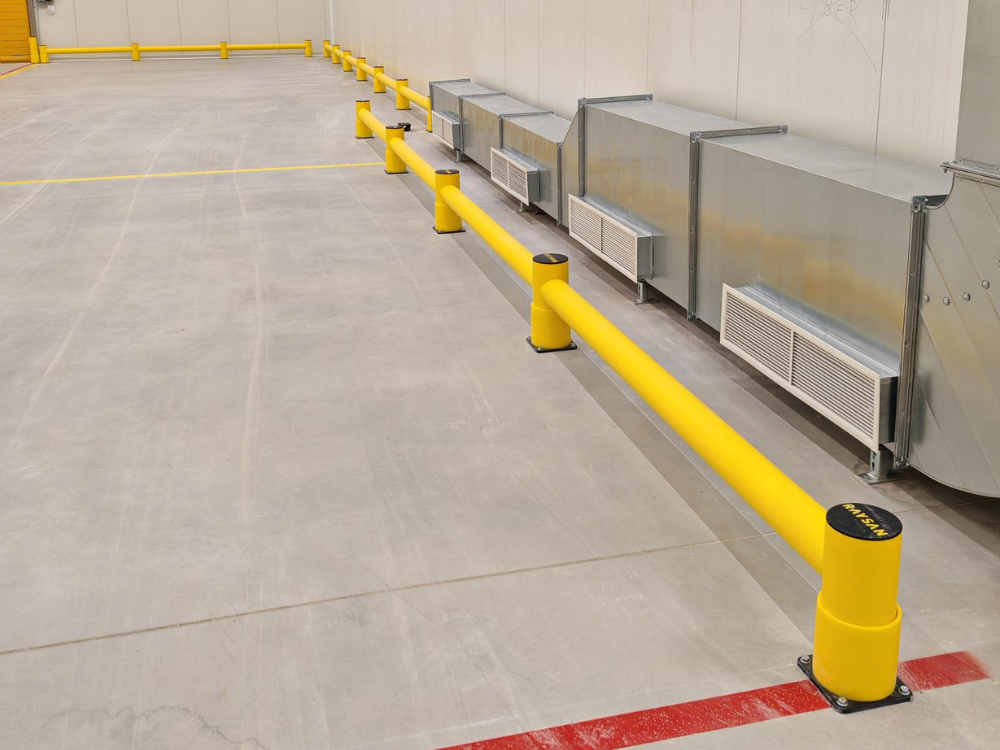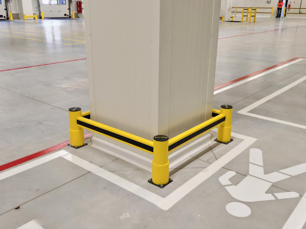 - Flexible, energy‑absorbing barriers and delimiters to protect columns, corners, doors, traffic paths, and operational zones;