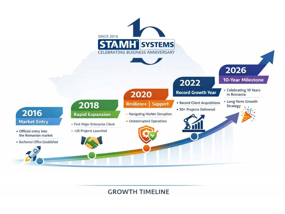 Over the past 10 years, STAMH Systems has achieved significant milestones that underscore its stability and long‑term success in Romania:
